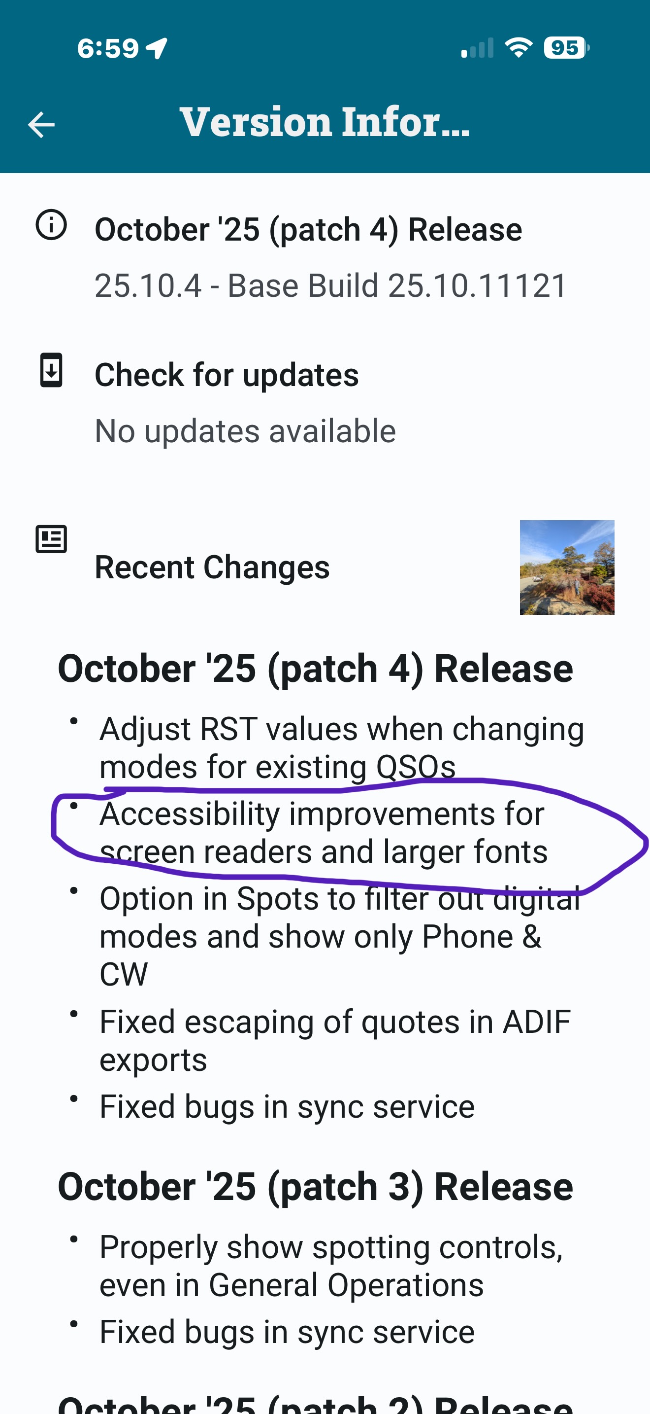 Thanks so much for listening. I really do appreciate it. A lot of older folks are getting into POTA and I always suggest your app. Us older guys need all the help we can get when it comes to our eyes. Also we’re dealing with being outside, sunlight and all sorts of other challenges. Everything and anything that can make it easier to log is always welcomed. Cheers de W3GTR