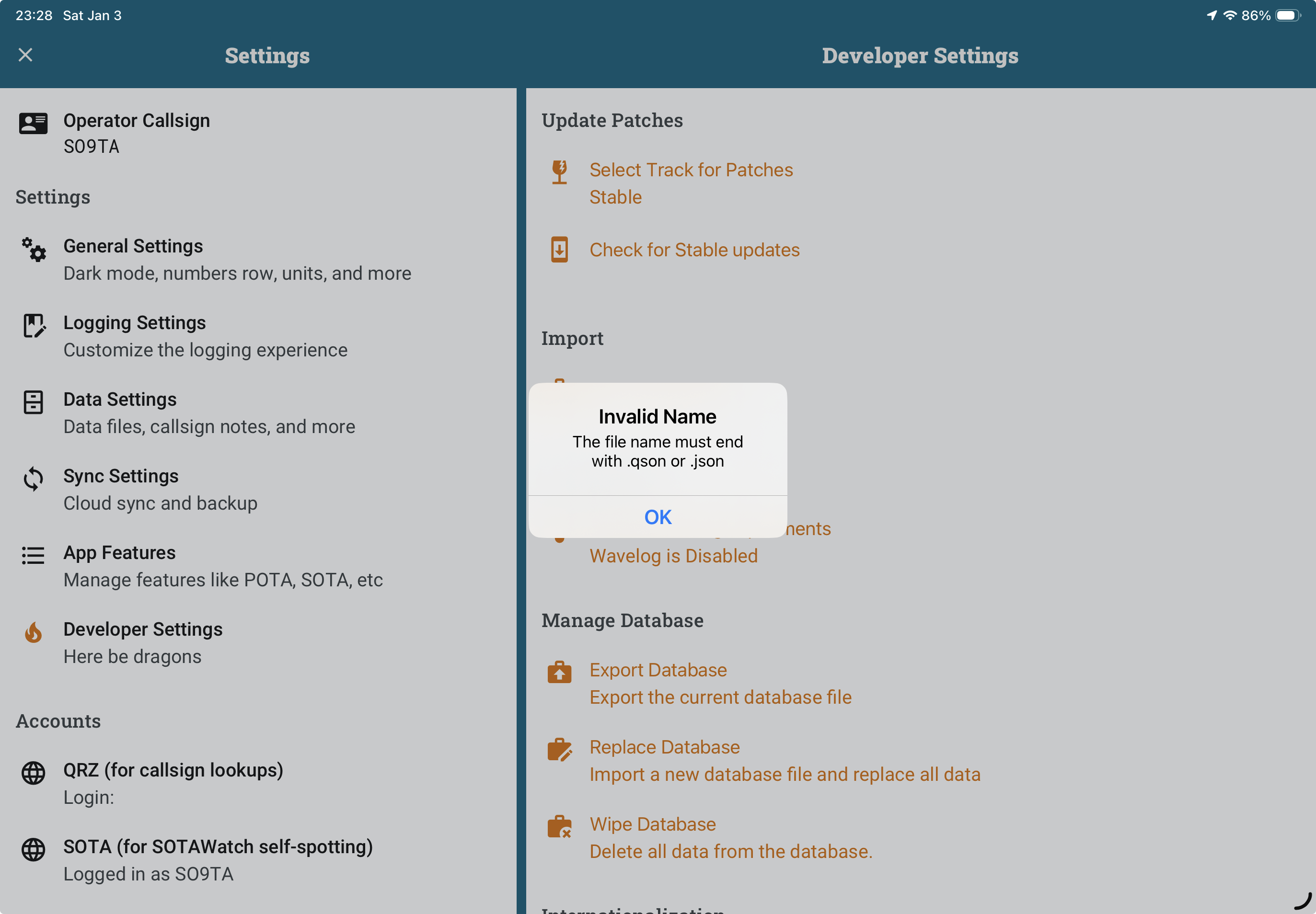After updating to the December release, QSON import seems to have stopped working. I successfully exported an operation to QSON on my iPhone. However, when I imported it on my iPad, a new operation was created, and then the app crashed. Upon restarting the app, I could only see an empty operation.