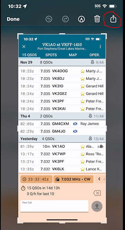 Prior to spotting I like to test my setup and talk to a few of the local elmers who aren’t great with pileups and I usually manually type it into a whatsapp group.