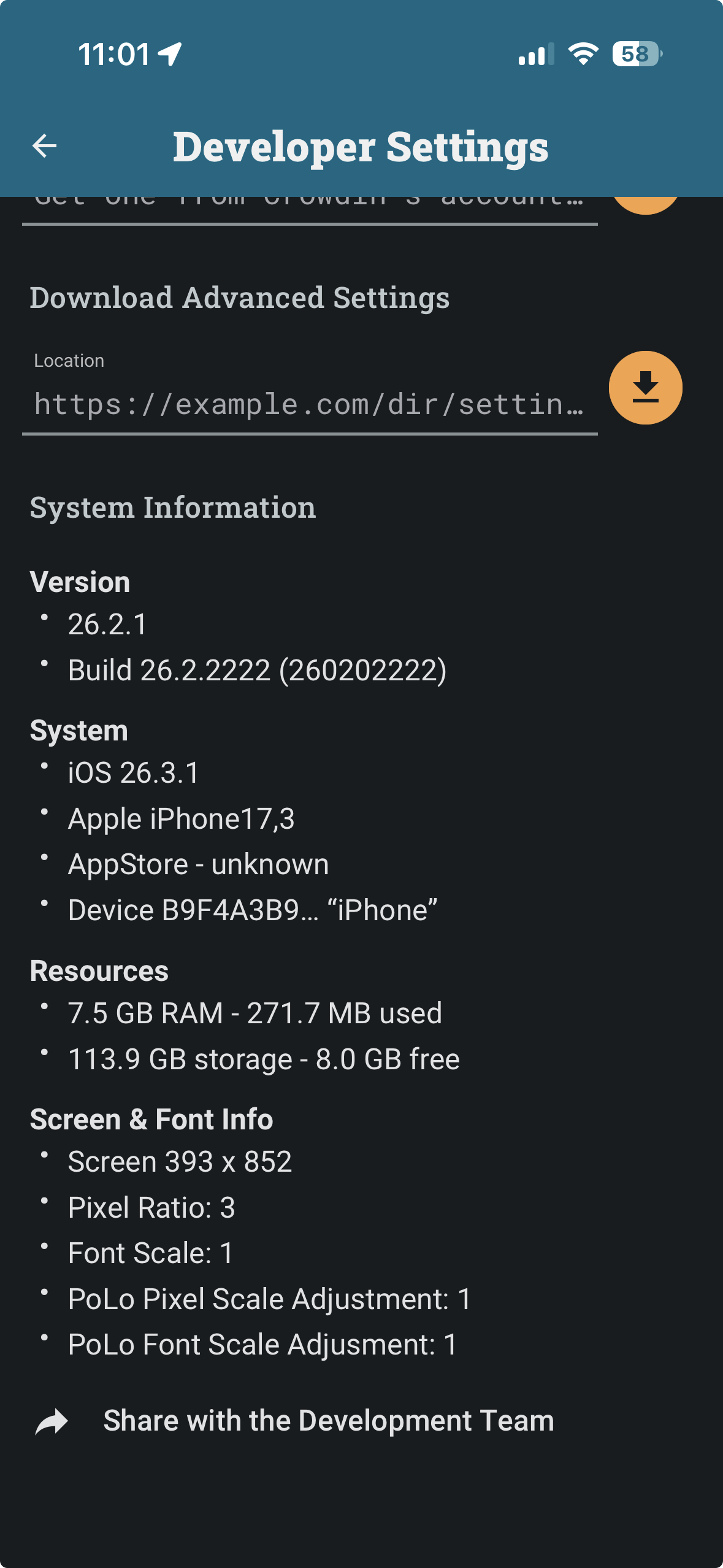 Can you activate Developer Settings and provide the System Information at the bottom of the Developer Settings page?