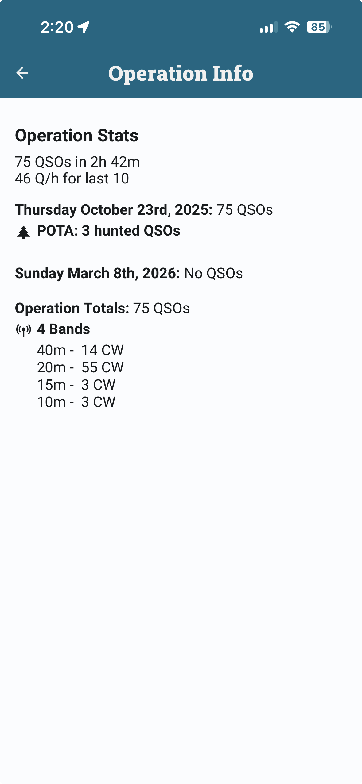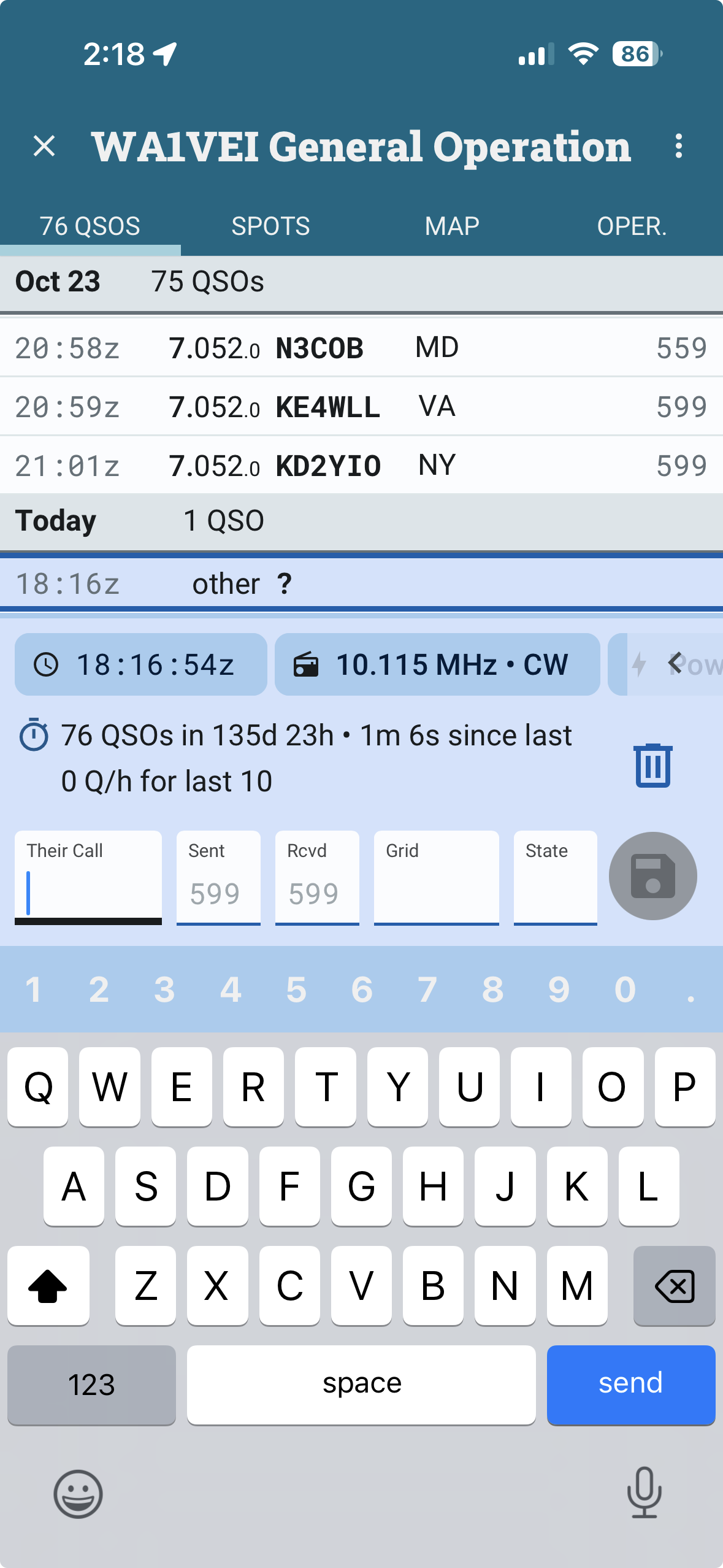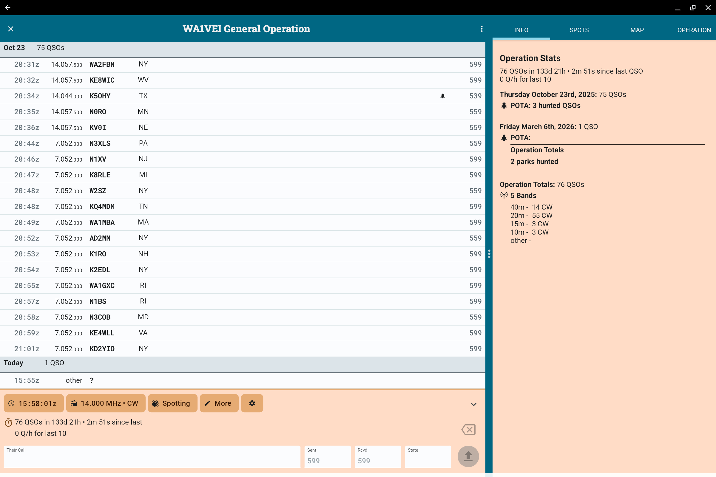 Did you by any chance edit a QSO in the list? I cannot see your operation QSO list, but let’s see what’s at the bottom.