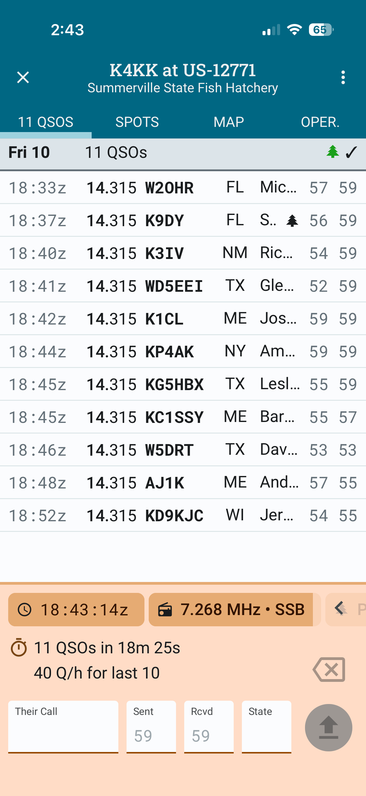 The lock doesn’t happen when I am in the middle of logging contacts. My system display shuts off after 30 seconds. If I don’t manually change it in iOS settings to 5 minutes, the phones display will lock while calling CQ.