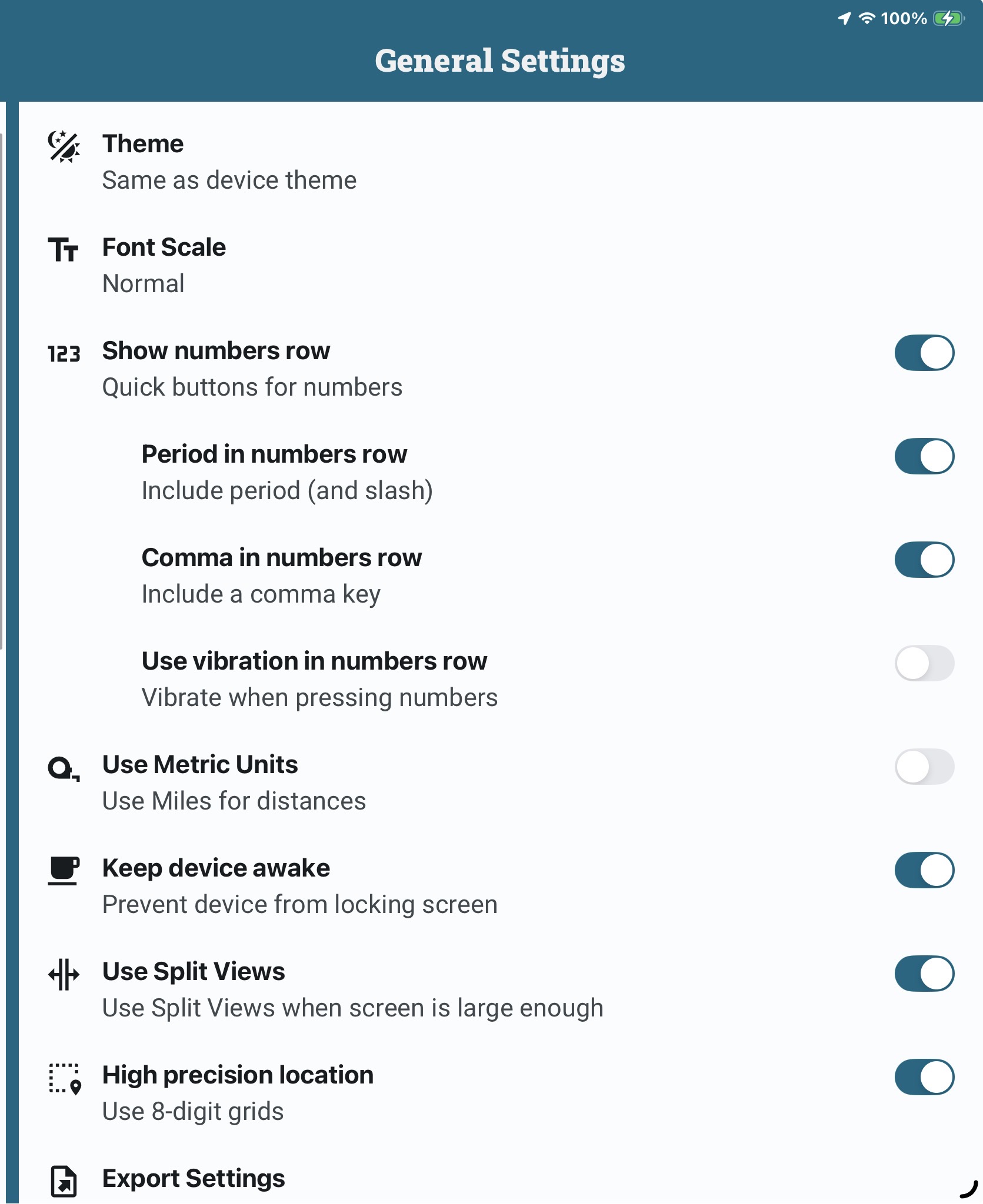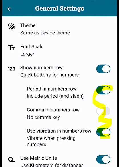 And also tell us what sub features you have enabled for the numbers row.