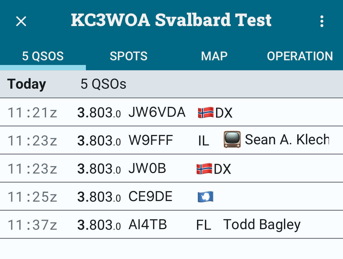 My recommendation was going to be use Polo! But I wanted to confirm that Polo would the line there first. And to my suprise it didn’t. Here is my Test Operation with two Svalbard contacts,